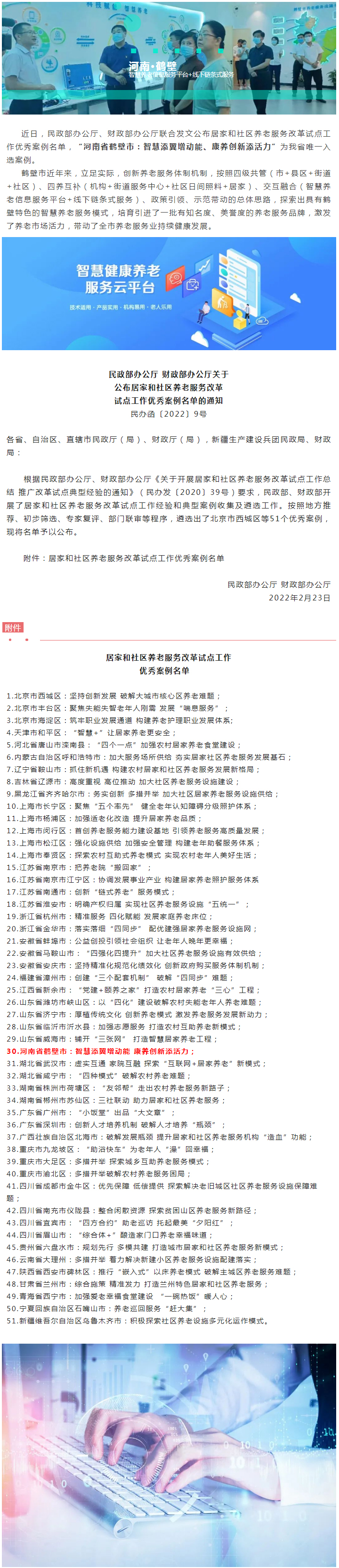 全國(guó)居家和社區(qū)養(yǎng)老服務(wù)改革試點(diǎn)工作優(yōu)秀案例名單公布,鶴壁案例入選!